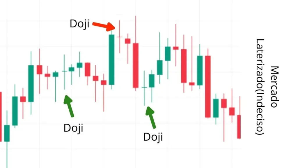 Em mercados laterais (sem tendência clara), o candlestick Doji é menos relevante, pois a indecisão já é característica do mercado. Ele é mais útil em tendências definidas.